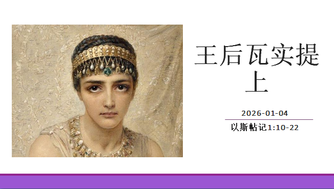 最后,七次命令。“请王后瓦实提头戴王后的冠冕到王面前,使各等臣民看她的美貌,因为她容貌甚美”。这是亚哈随鲁王吩咐他的七个太监的命令内容。七个太监也意味着七次命令。也就是说,这一命令被传达了七次。数字“七”表示完全,意味着亚哈随鲁王务必要见到王后瓦实提的决心。我们将详细来看:第一,请王后瓦实提。这至少强调两个事实:一是,这命令是给瓦实提的。二是,“请”的原文乃是“带”,并没有“客气,尊敬”的意思。换言之,王的命令是:“你去把王后带来”。第二,“头戴王后的冠冕”,这是对王后瓦实提的衣着要求。只是有一个问题给大家思考,瓦实提既是王后,为何还要强调佩戴王后的冠冕呢?王后难道不是佩戴着王后冠冕的人吗?这是我的个人领受,两大原因,供大家参考:一是,表示强调,瓦实提必须佩带王后的冠冕,才能与王后的身份相匹配。二是,因为王后瓦实提容貌甚美,戴上王后冠冕便是锦上添花,更加完美,更加美貌。第三,到王面前。王后瓦实提将要戴着王后的冠冕站在亚哈随鲁王的面前。这一幕便是亚哈随鲁王虚荣心、悦人眼目的驱使与试探。“站在王面前”前后呼应王定于一尊,人前演神。第四,使各等臣民看她的美貌。王后瓦实提成为众人围观的对象,成为别人的“悦人眼目”。“各等臣民”不仅指向来自波斯玛代的首领和贵胄,更是指所有住在苏珊城的大小人民,甚至指向所有的波斯帝国的人民。第五,因为她容貌甚美。王后瓦实提是一位美女,这是毋庸置疑的。美丽的王后瓦实提,从这个角度也可指向或平行与基督的教会或新妇,后者也是美丽圣洁的妇人,如经上所记:2我为你们起的愤恨,原是神那样的愤恨,因为我曾把你们许配一个丈夫,要把你们如同贞洁的童女献给基督;(哥林多后书11:2)。6我听见好像群众的声音,众水的声音,大雷的声音,说:“哈利路亚!因为主我们的神,全能者作王了。”7我们要欢喜快乐,将荣耀归给他。因为羔羊婚娶的时候到了,新妇也自己预备好了,8就蒙恩得穿光明洁白的细麻衣。这细麻衣就是圣徒所行的义。(启示录19:6-8)。2我又看见圣城新耶路撒冷由神那里从天而降,预备好了,就如新妇妆饰整齐,等候丈夫。(启示录21:2)。9拿着七个金碗、盛满末后七灾的七位天使中,有一位来对我说:“你到这里来,我要将新妇,就是羔羊的妻,指给你看。”10我被圣灵感动,天使就带我到一座高大的山,将那由神那里从天而降的圣城耶路撒冷指示我,11城中有神的荣耀。城的光辉如同极贵的宝石,好像碧玉,明如水晶。(启示录21:9-11)。